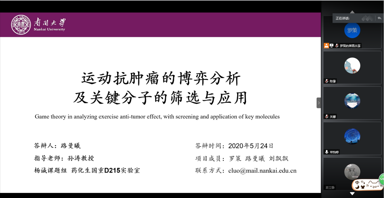 (通讯员:刘飘飘 路曼曦 罗策)5月24日,伟德国际victor19462020年伟德国际victor1946本科生创新科研项目中期检查暨结题评审会利用腾讯会议平台线上进行。中期检查包括4项2017级“国家级创新科研实践”项目;结项验收包括2项2016级“国家创新科研实践”项目,6项2017级“天津市级创新创业训练计划”项目和6项2017级“百项工程”项目共14项。最终对14项项目予以结题,并对其中杰出项目3项予以推优。
