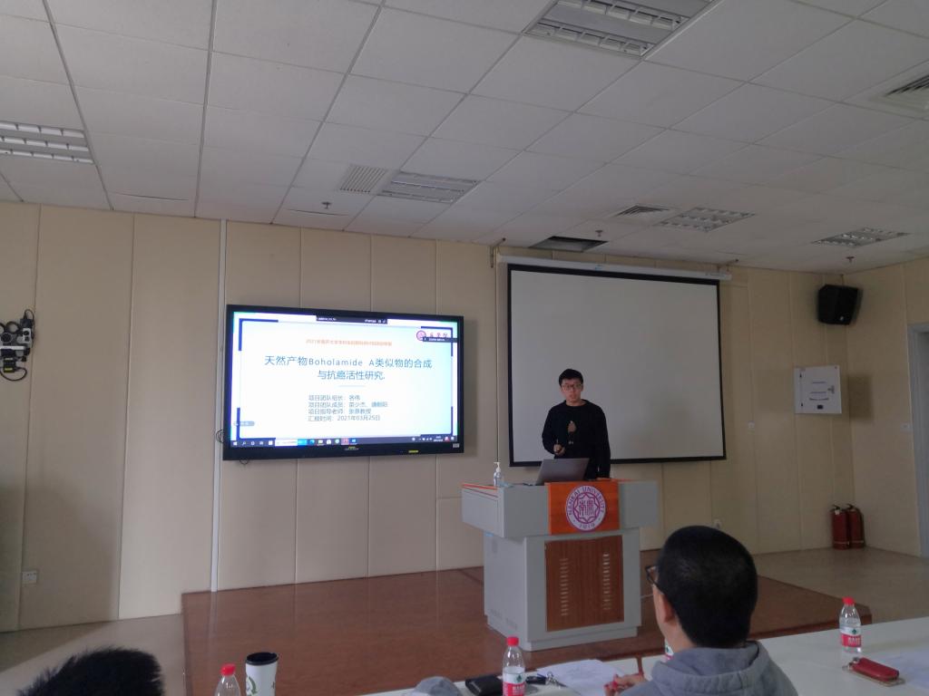 会上,共有21组同学进行汇报参加答辩。同学们分别从生物药学,化学药学,中药研发等方面阐述了各自小组的实验研究;其中不乏对于新冠疫苗,中药化妆品等实时结合的实用性研究,也有对国外研究成果进行优化调整的创新性研究。汇报方面,同学们在时长限制内一方面尽可能简短地进行了整体研究背景的科普,一方面展示了自己对于化学原理、实验表征等方面的理解。