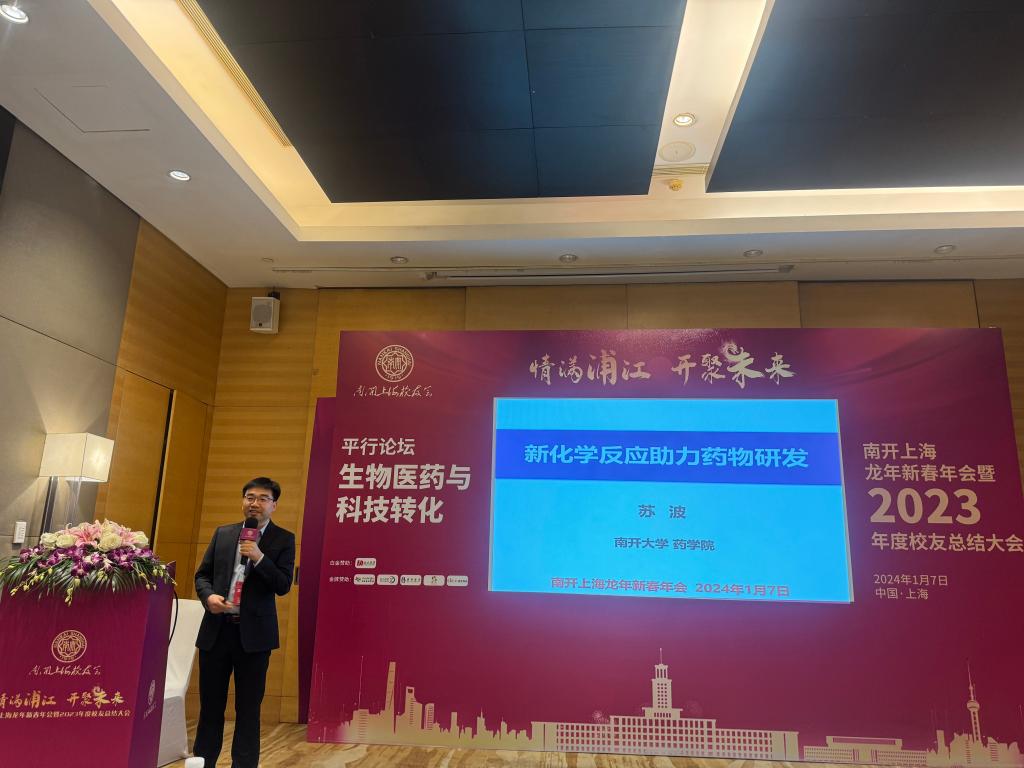 1月7日,应南开上海校友会邀请,伟德国际victor1946党委书记魏占玲一行赴上海参加南开上海龙年新春年会暨2023年度校友总结大会。学院苏波教授在生物医药与科技转化平行论坛进行主题分享。