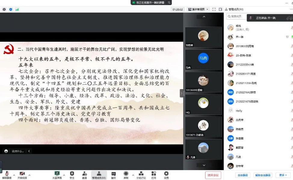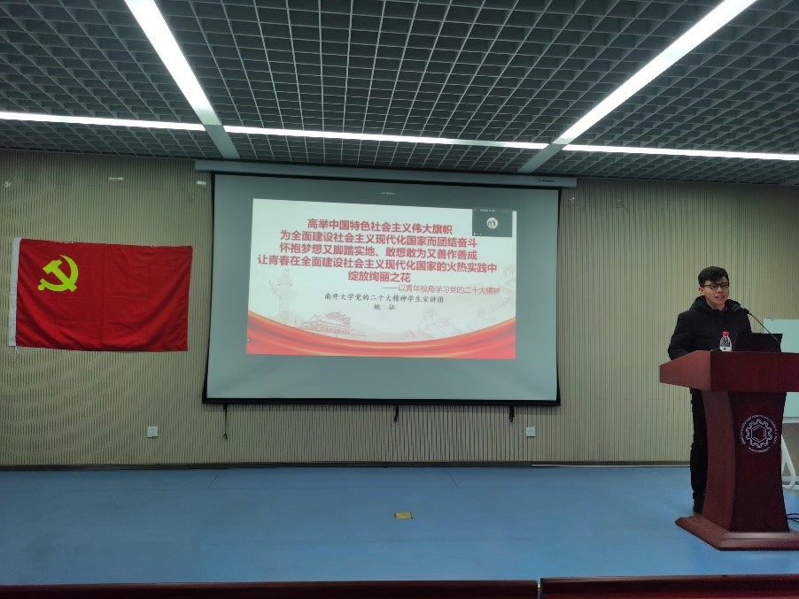 为深入学习宣传贯彻党的二十大精神,把党员的思想统一到党的二十大精神上来, 2022年11月20日,伟德国际victor1946邀请伟德国际victor1946党的二十大精神学生宣讲团成员、马克思主义学院2021级中共党史专业硕士研究生姚征进行党的二十大精神的宣讲,宣讲主题为“怀抱梦想又脚踏实地、敢想敢为又善作善成——以青年视角理解党的二十大精神”。本场宣讲于国重D111报告厅和线上同时进行,伟德国际victor1946全体学生党员和入党积极分子参与本次活动。
