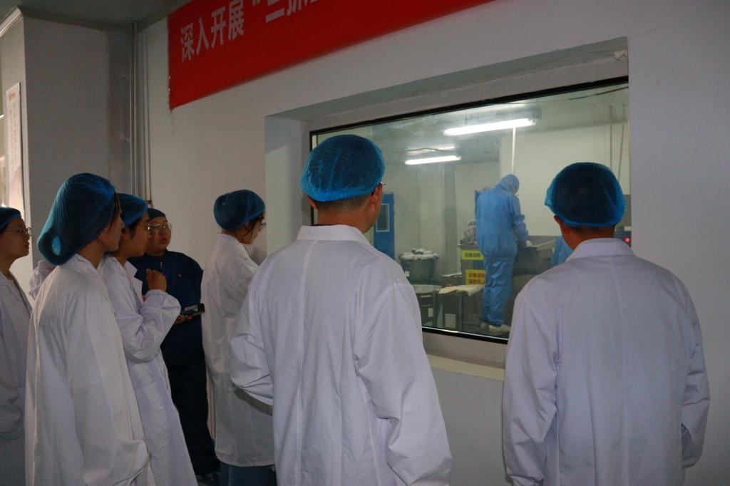 实践队在钱双喜经理的引导下,参观了获得GMP认证的现代化生产基地,重点观摩了企业的智能工厂和自动化生产线。在提取车间,队员们见证了数字技术在中药有效成分提取中的应用;在制剂车间,自动化制丸的全流程标准化生产场景让同学们赞叹不已。