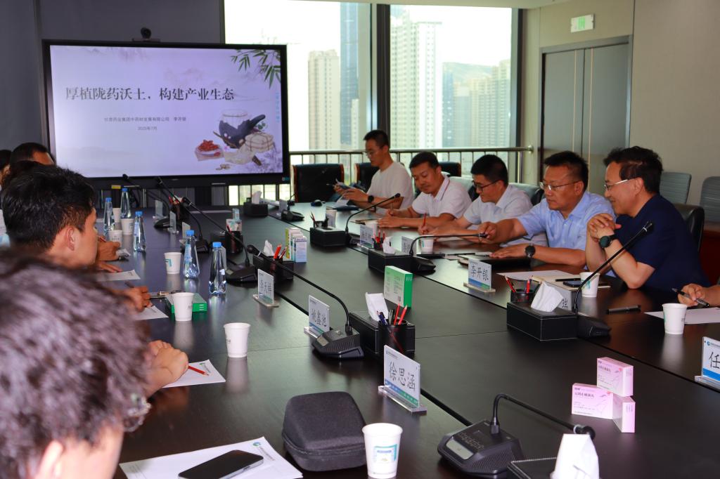 在与甘肃药业投资集团举行的座谈会上,双方围绕中医药产业发展与校企合作展开深入交流。姜民教授分享了近红外技术在中药质量检测中的应用研究,提出将该技术引入企业质检环节的可能性。李天祥教授结合甘肃中药材资源优势,提出当归、党参等道地药材的深度开发建议,强调差异化发展的重要性。马琳教授则从道地药材种植角度,重点阐述了优质种子种苗繁育的重要性,建议通过规范化种植技术提升药材品质。杨志刚教授重点强调了中医药与大健康产业融合发展的战略方向,建议依托甘肃道地药材资源优势,开发具有地域特色的健康产品系列。